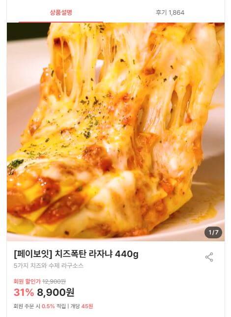 홈파티 음식에 치즈 메뉴가 빠질 수 없죠? 보통 피자를 생각하지만 특별한 크리스마스 홈파티 음식 메뉴로 추천하는 라자냐입니다. 모짜렐라, 체다, 그라나파다노, 슈레드, 파마산까지 총 5가지 치즈가 들어가 있는 제품으로 전자레인지에 7분만 돌리면 완성입니다. 오븐, 에어프라이어에 조리하면 치즈 풍미를 더 잘 느낄 수 있다고해요. 페이지에 들어가면 라자냐와 잘 어울리는 MD님의 추천 페어링 와인과 맥주도 소개되어 있으니 같이 즐기면 좋을 것 같습니다 :)